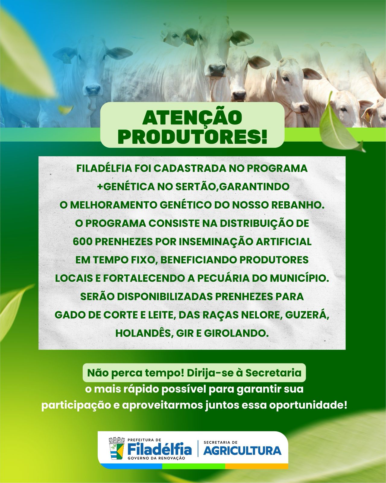 Prefeitura de Filadélfia, por meio da Secretaria de Agricultura, conquistou a inclusão do município no programa +Genética no Sertão, uma iniciativa que promoverá o melhoramento