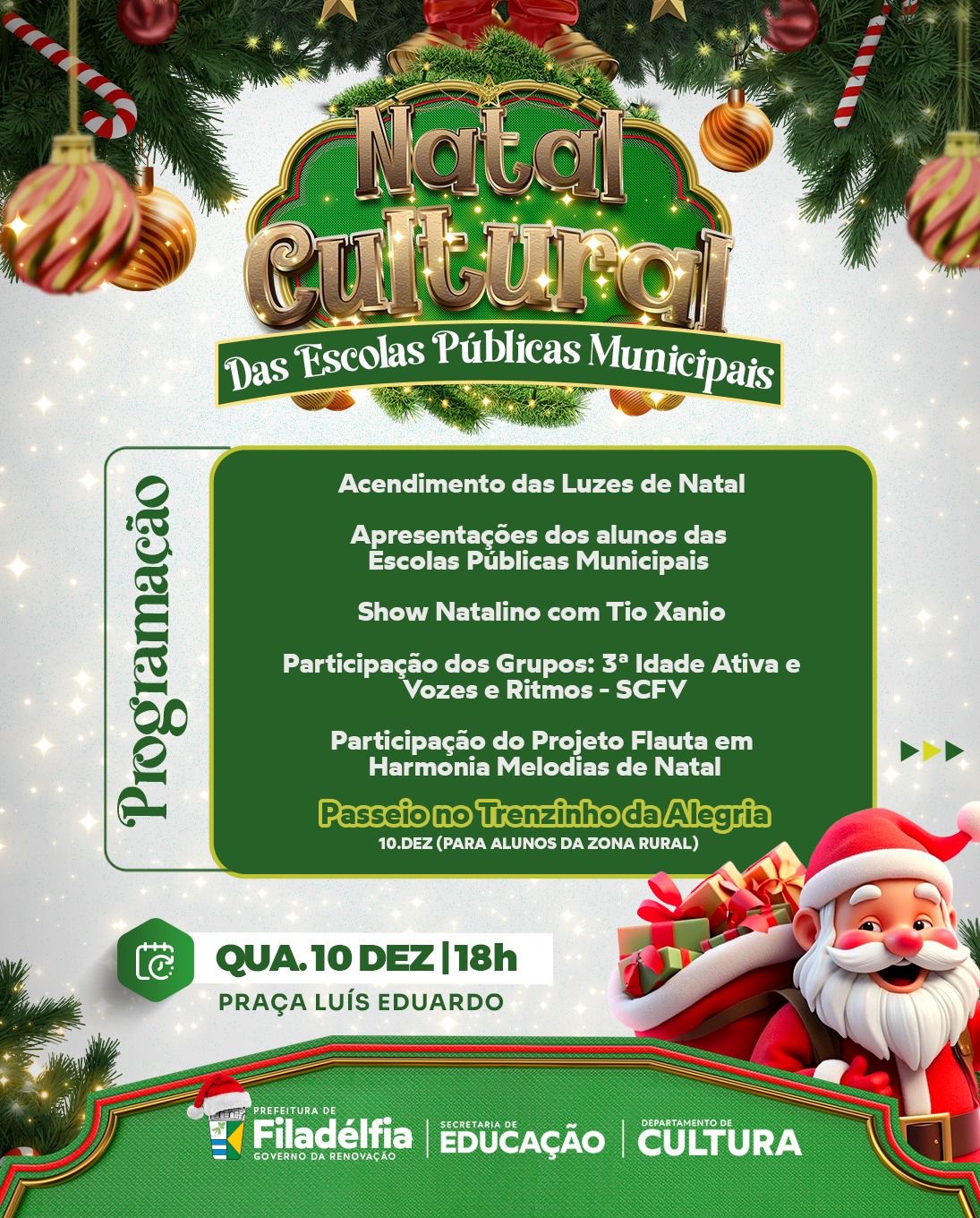 A Prefeitura de Filadélfia realizou, nesta sexta-feira, dia 12, o pagamento antecipado da segunda parcela do 13º salário dos servidores públicos municipais. A medida representa a circulação de quase R$ 900 mil na economia do município, fortalecendo o comércio local e evidencia o compromisso da gestão com a valorização do funcionalismo público.